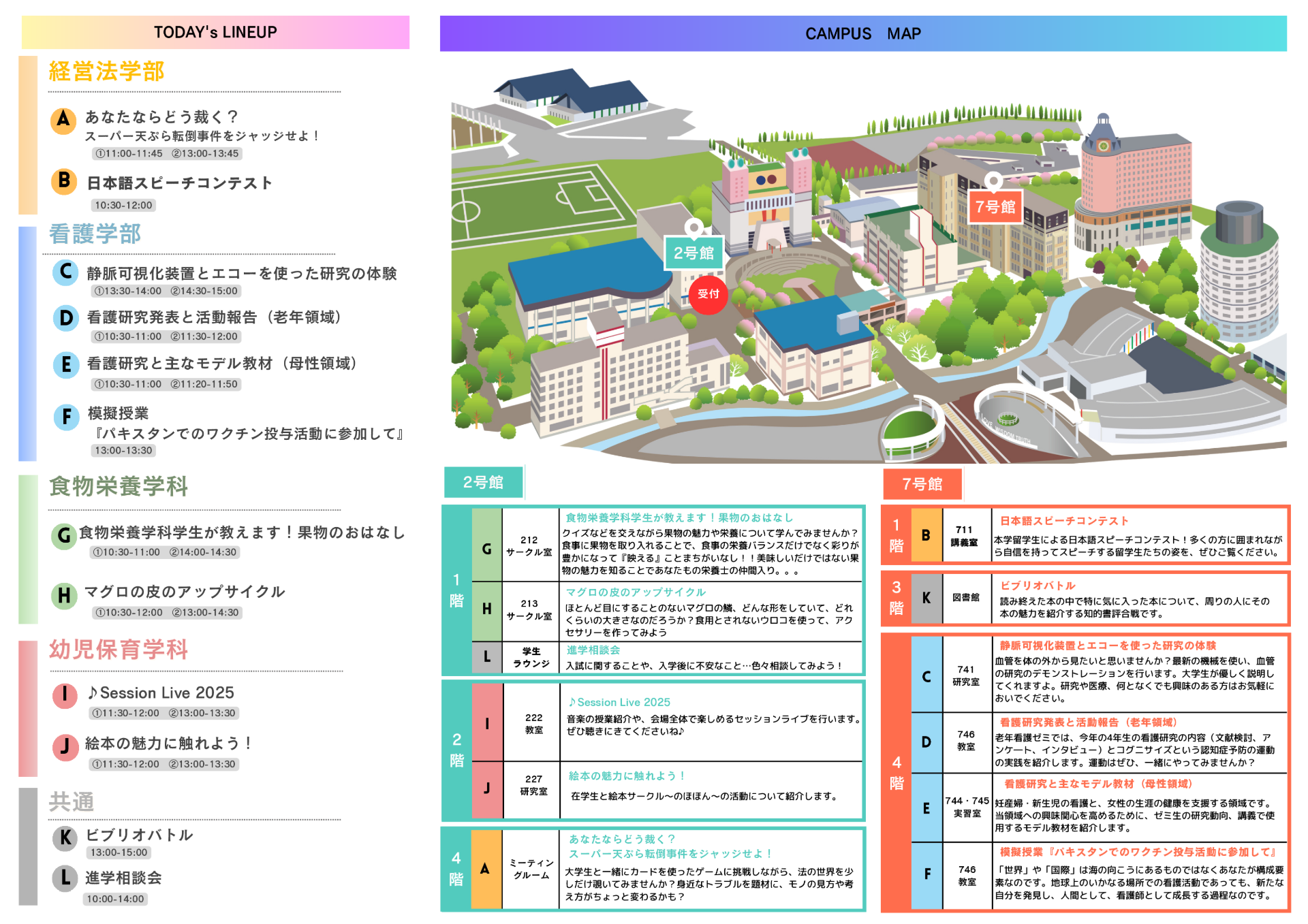 また、翔麗祭(学園祭)初日と同日開催です。学生による模擬店や各種企画をご用意しておりますので、ふらっと本学へ遊びに来てみませんか?
