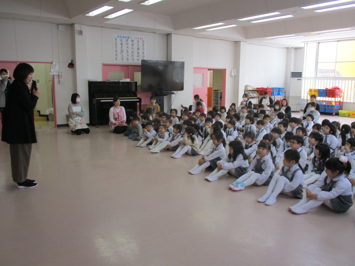 1月19日(月)に第3学期始業式が行われました。久しぶりに登園して来た子どもたちはみんなニコニコ♫クラスの友だちと会うことができて嬉しそうでした!式では、元気に園歌を歌い、園長先生のお話もかっこよく聞くことができました。