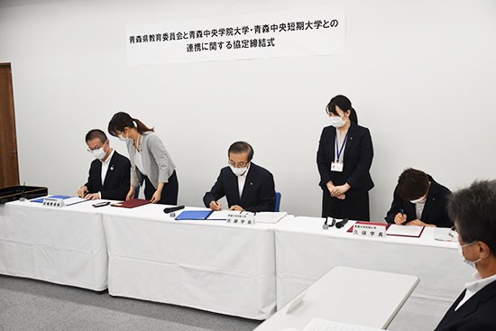 2020年9月9日、青森県教育委員会と青森中央学院大学、青森中央短期大学は、地域の人材育成、学校教育、社会教育やスポーツの振興などに向けた連携協定を締結しました。