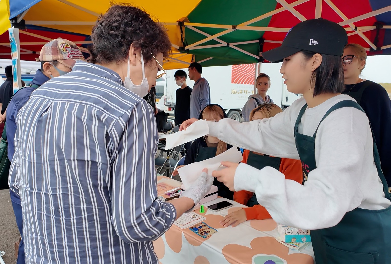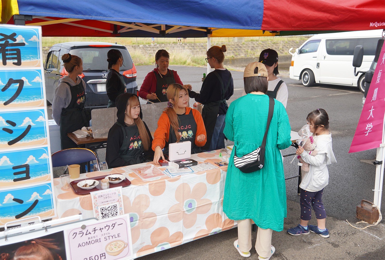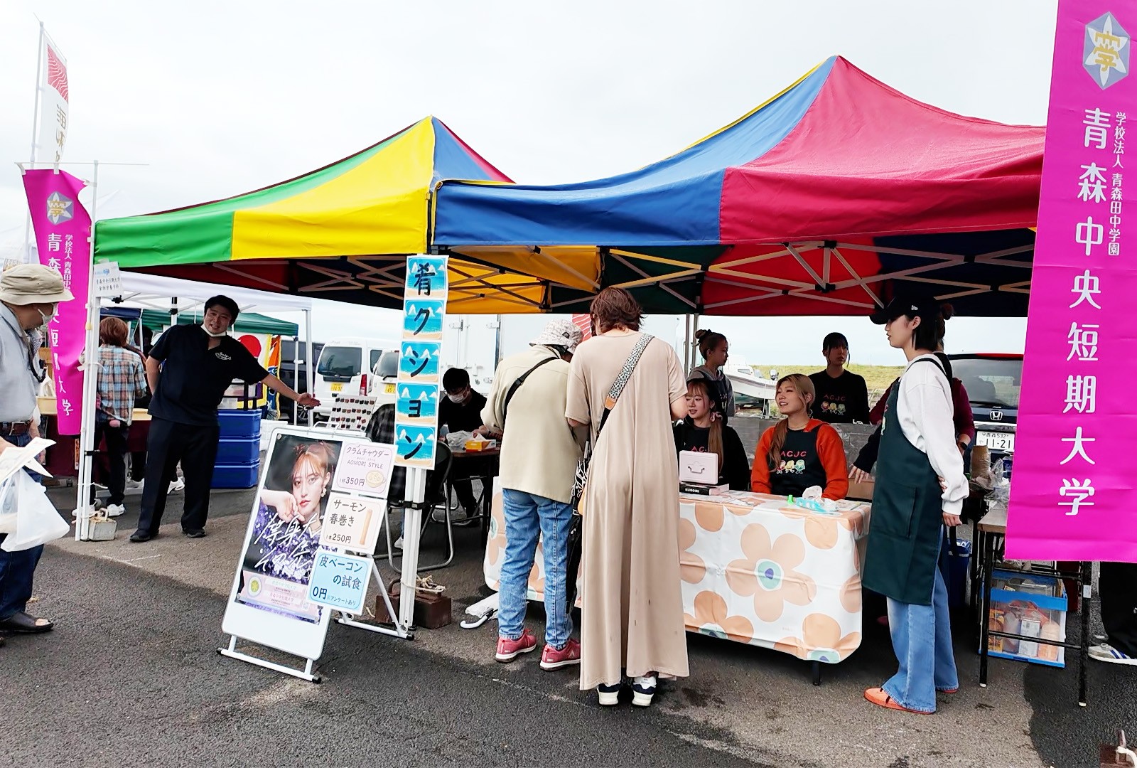 2025年10月5日、青森市のあさむしマリーナ裏広場で開催された「あおもりの漁師祭」に、青森中央短期大学食物栄養学科の教員・学生が出店・参加しました。