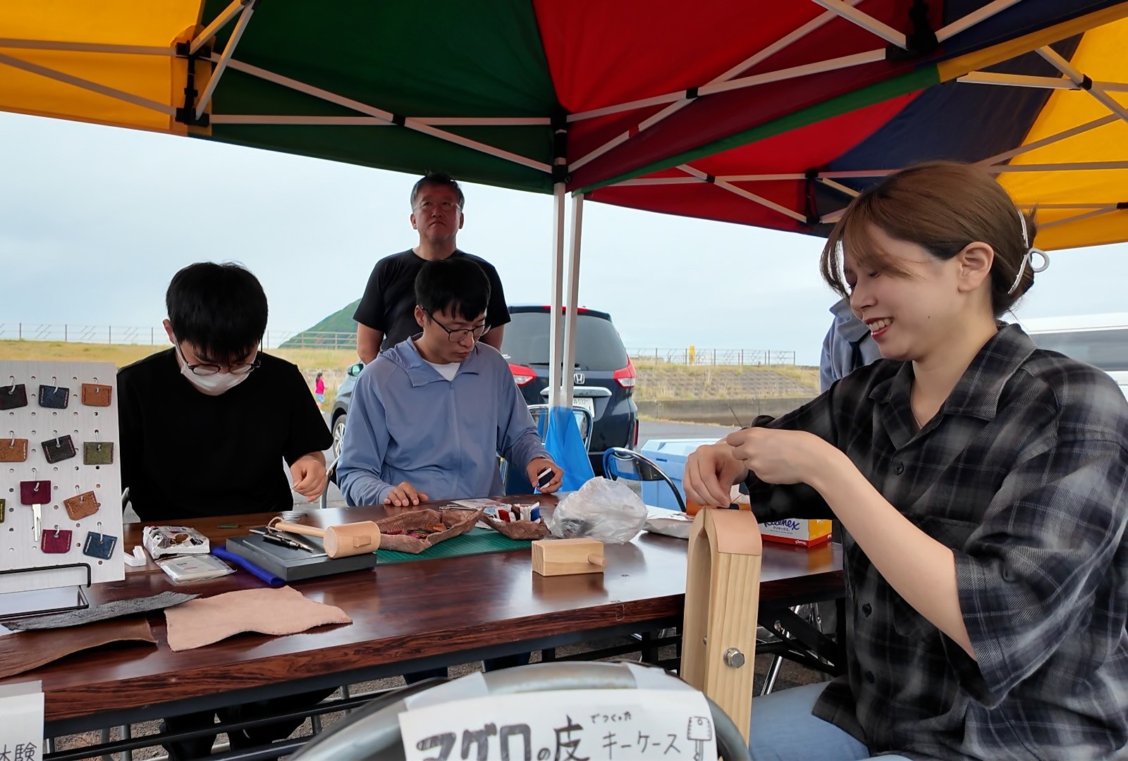 食物栄養学科からは、マグロ革のキーカバー制作体験ブースと、クラムチャウダーやサーモン春巻きを販売する「肴(サカナ)クション」が出店し、盛況でした。