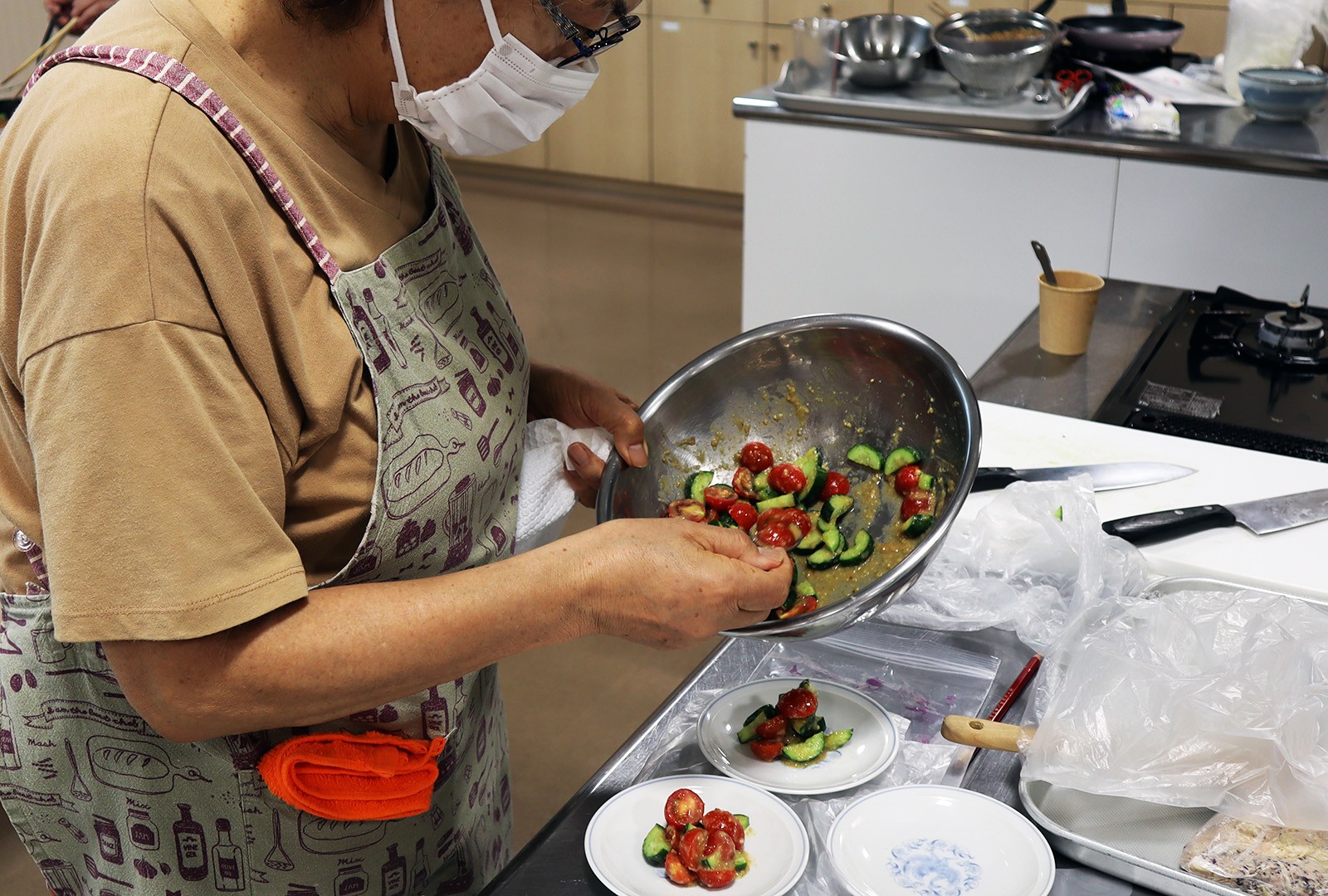 皆さん手際よく、和気あいあいと調理し、盛り付けをそれぞれ工夫して、楽しく試食していました。