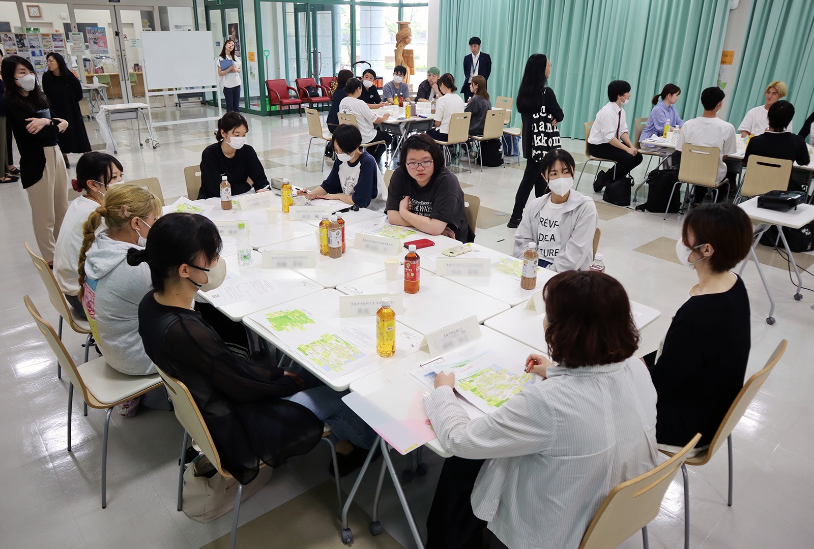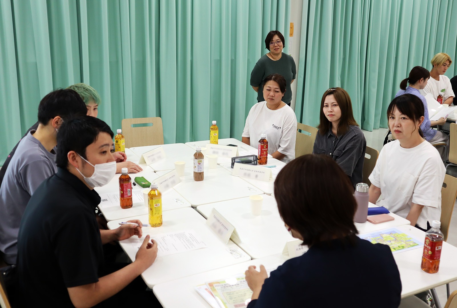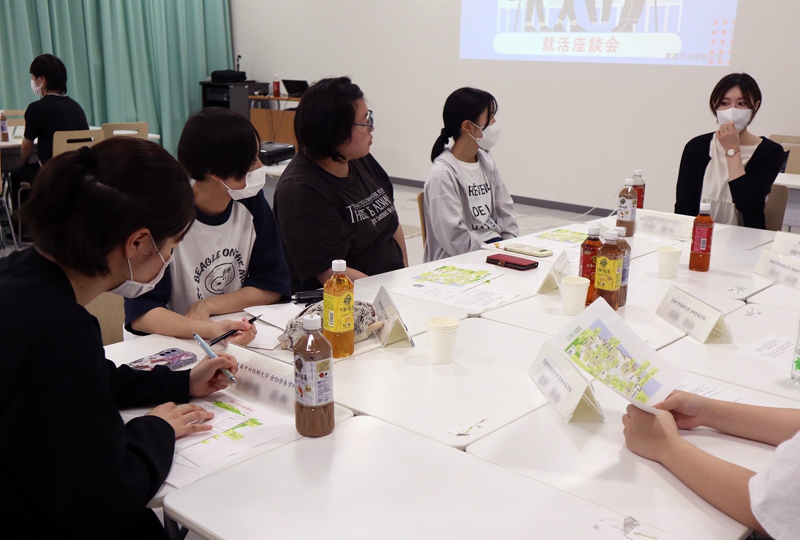 食物栄養学科1年生で、県外出身者や男子学生、社会人学生を対象とした、就職に関する座談会を開催しました。