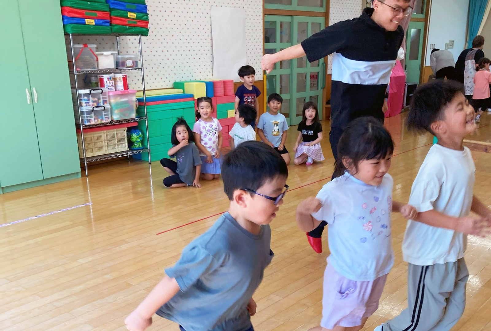 2025年10月2日、幼児保育学科・兼平友子准教授の特別研究室の学生たちが、青森中央学院大学の留学生と共に、野辺地保育園を訪問し、子どもたちと異文化交流(Global Study School for Children)を行いました。