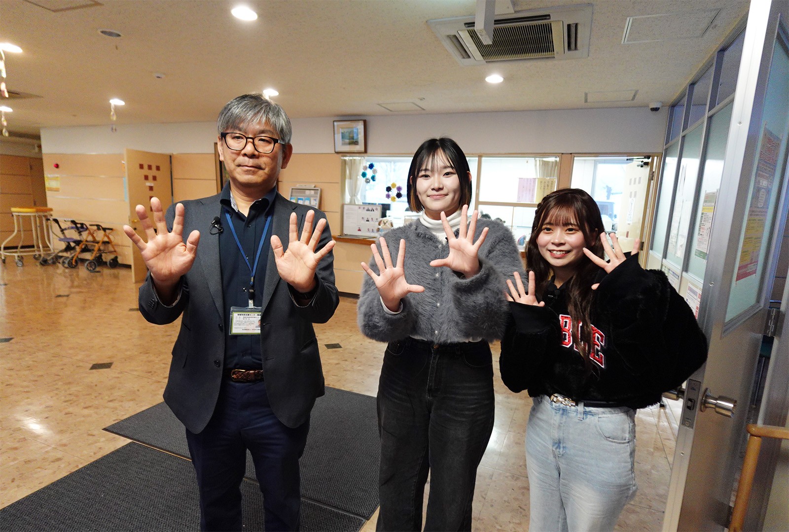 2026年2月28日、青森市広報番組「キラリ!あおもり創造人」に、幼児保育学科2年の髙山 優貴さん、武田 羽空愛さんが出演しました。 この日は、青森市地域包括支援センターみちのく 所長・佐々木 央さんをゲストに迎えての放送となり、青森市地域包括支援センターみちのくで収録されました。 学生たちは幼児保育学科のミュージカルについて紹介しました。