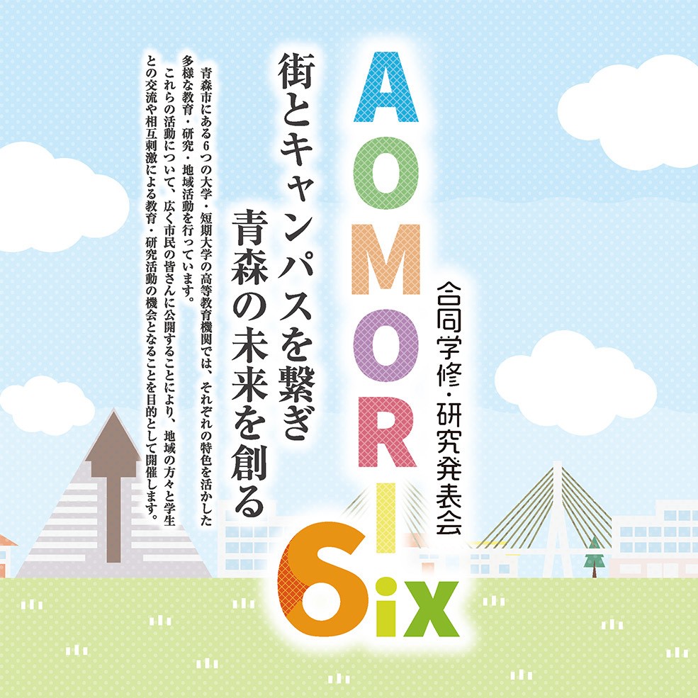 青森市内にある6大学・短期大学(通称AOMORI SIX)及び、青森市、青森商工会議所で構成している青森市産官学連携プラットフォームでは、大学間の交流や相互刺激による教育・研究連携活動を促進するとともに、市内の大学・短期大学の活動について広く市民の方々に理解を深めていただくことを目的として、「AOMORI SIX合同学修・研究発表会」を開催してまいりました。