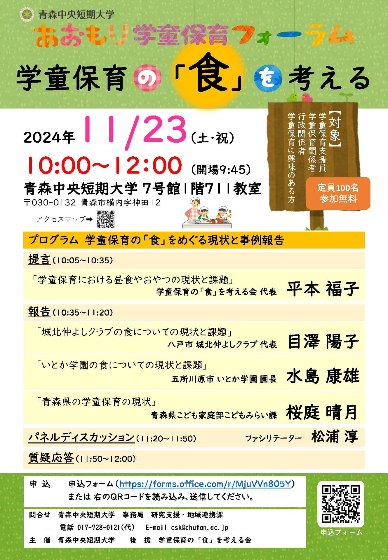 長期休みに自宅や学童保育施設で過ごす子どもたちの「食」に焦点を当て、その現状を知り、情報を共有する「あおもり学童保育フォーラム」を開催します。