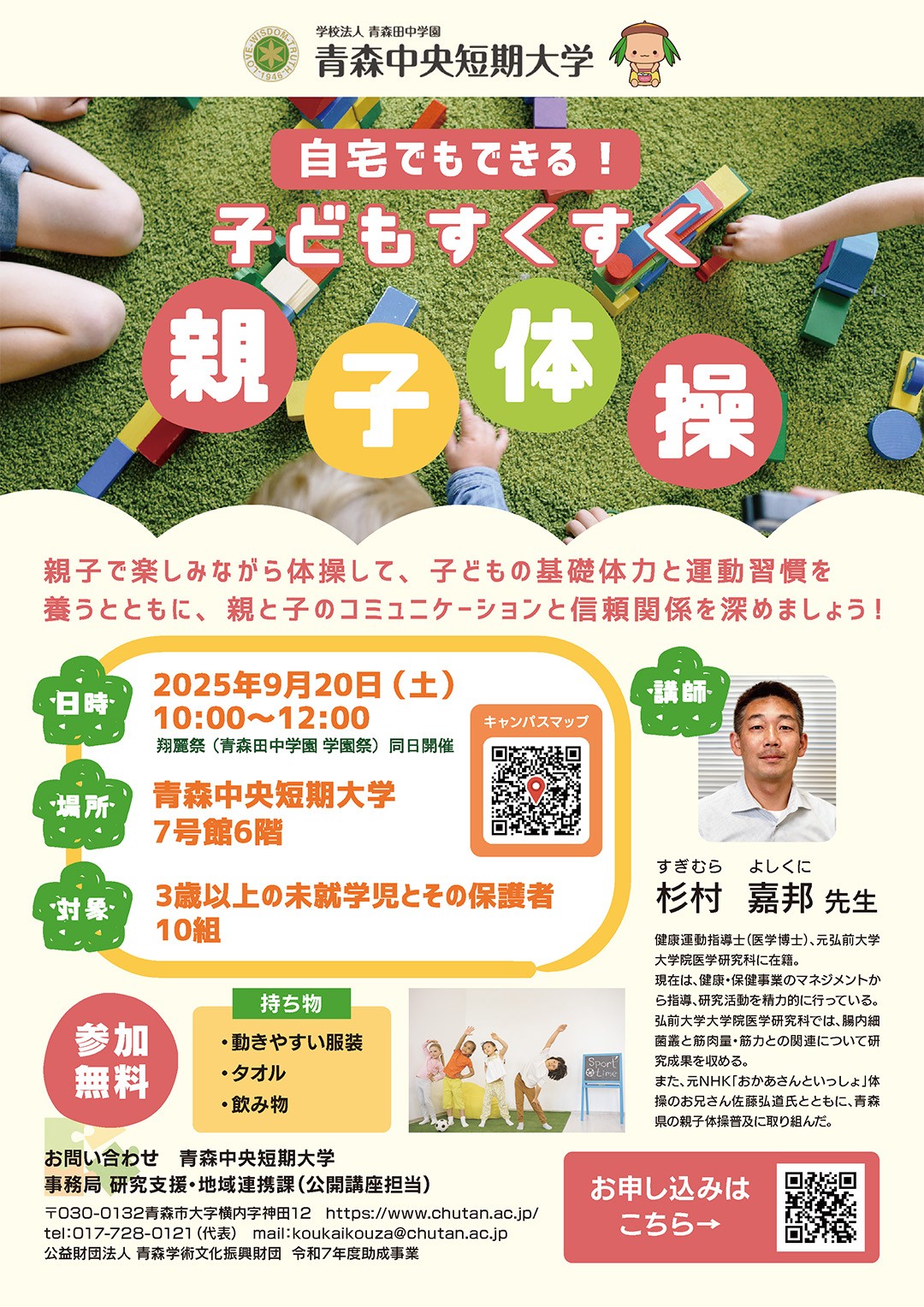 青森中央短期大学 2025年度 公開講座を下記のとおり開催しますので、お知らせいたします。